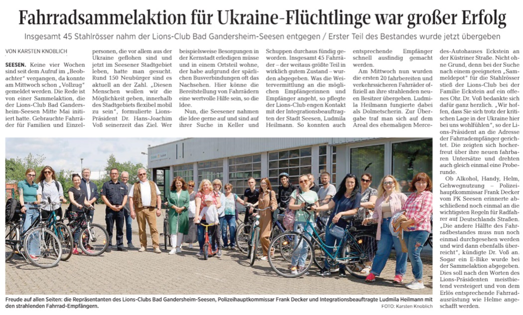 Deshalb werden Wiesen am Vortag einer Mahd akribisch nach Wildtieren, besonders nach Kitzen, abgesucht. Dieter Brinkmann, Vorstand der Stiftung des Lions-Clubs Bad Gandersheim-Seesen und Dr. Hans-Joachim Voß, Präsident des Lions- Clubs Bad Gandersheim-Seesen, wissen einerseits als passionierte Jäger und andererseits als Naturkenner selbst, wie wichtig die Wildtierrettung ist. Mit Flatterbändern oder Reflektoren versucht man beispielsweise, die Tiere aus dem hohen Gras zu vertreiben, berichtet Naturschutzobmann Ulrich Stolzenburg von der Jägerschaft. Wichtig ist, dass die Wildtiere beziehungsweise Kitze nie direkt mit der Hand angefasst oder auf den Arm genommen werden, da sie sonst den menschlichen Geruch annehmen und von der Mutter verstoßen werden können. In solchen Fällen ist auch direkt der zuständige Jäger zu informieren. Am vergangenen Donnerstag fand die Spendenübergabe im Rahmen der geltenden Corona-Verordnung und Abstandsregeln statt.